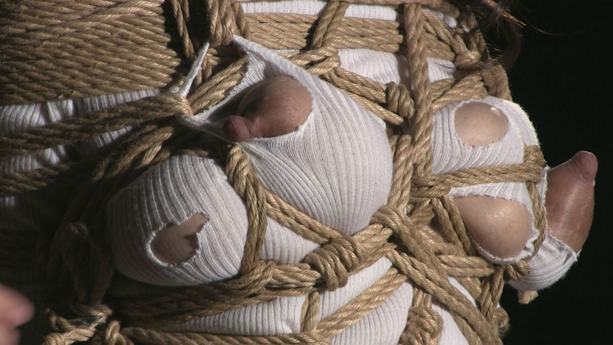 本物のマゾ女性を起用した緊縛撮影のドキュメント映像です。実際にマゾ女性を責めながら、厳しく官能的な被虐美を求め、縛りと責めを行います。苛烈な縄で乳房を責め、その先端からは母乳が滴ります。逃れられないように柱に縛り、巨乳を覆い隠すほどの量の洗濯ばさみで乳肉を責めます。性器をむき出しにした格好に縛りあげ、拳をねじ込み、縄で搾り上げた乳房や乳首に高温の仏壇ロウソクを垂らすのです。本物のマゾ女性でなければ成り立たない厳しい縛りと責め…そんな責めにさえ感じてしまうマゾ女性の真実の姿が収められています。本格的緊縛マニア・SMマニア向けの作品です。 ※DVDパッケージ収録時間と本編収録時間は異なります。あらかじめご了承ください。
